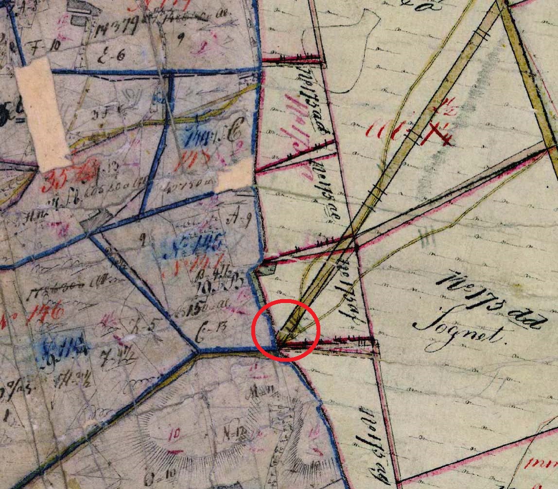 Efter udskiftningen lå huset øst for udmarksgærdet på matrikel 175af. (Stengærdet på foto fra omkring 1915 er ikke udmarksgærdet, men et havegærde)